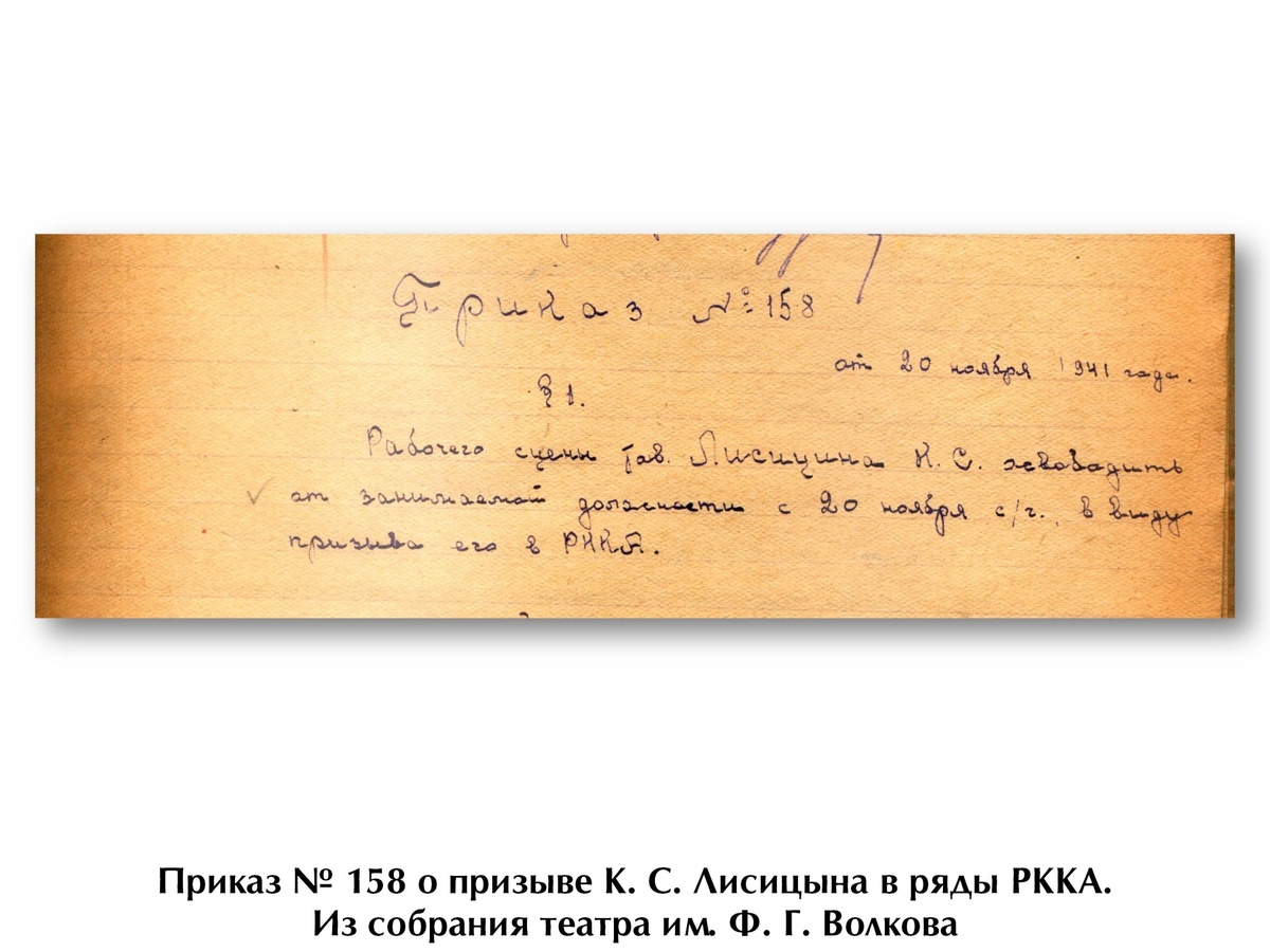После войны 23-хлетний Константин Лисицын устроился актёром в Ярославский театр имени Волкова, который кстати является самым первым русским театром, недавно отметившим своё 275-летие.