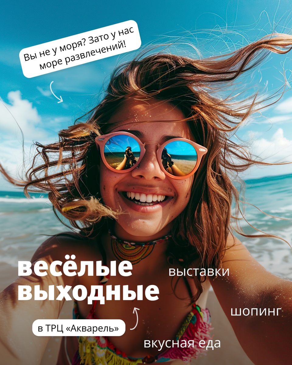 — И конечно, выгодный шопинг! У нас огромная распродажа, спешите за покупками, скидки до -70%. Это самое лучшее освежающее предложение лета!