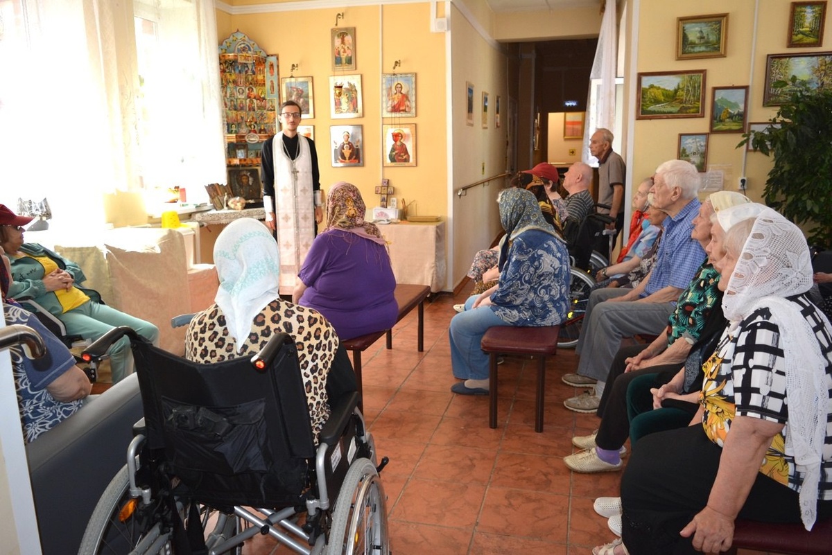 Посещение дома-интерната «Ветеран» города Коломны 11 июля настоятель Никитского храма села Северское иерей Иоанн Чепкий посетил Коломенский городской дом-интернат малой вместимости для граждан пожилого возраста и инвалидов «Ветеран». В ходе посещения отец Иоанн исповедал и причастил Святых Христовых Тайн подопечных учреждения, отслужил водосвятный молебен и заупокойную литию. https://clck.ru/3NBbdH