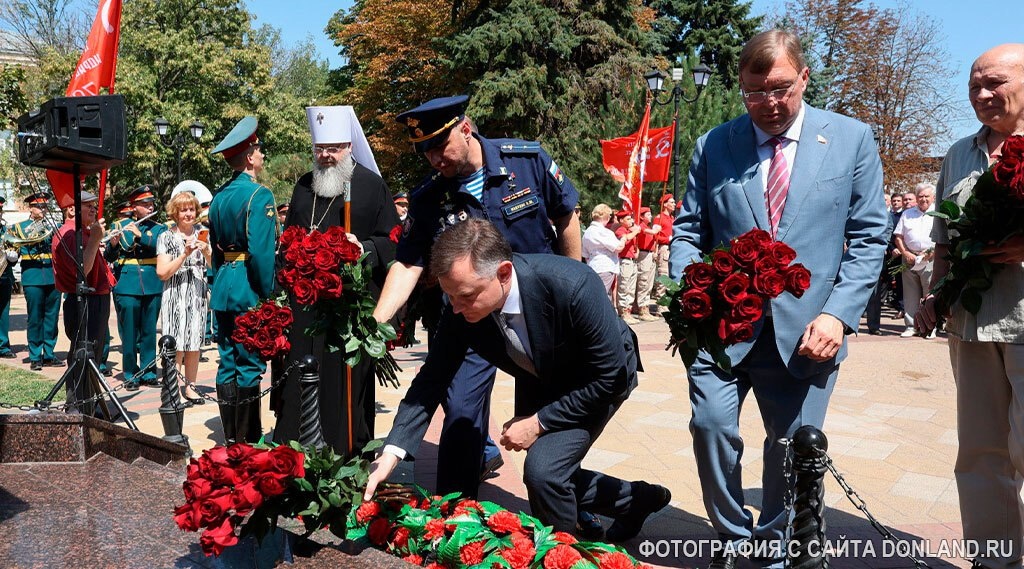 Юрий Слюсарь возложил цветы к памятнику Герою России Алексею Бересту 18 июля в Ростове-на-Дону глава региона Юрий Слюсарь возложил цветы к памятнику Алексею Бересту — легендарному земляку, которому накануне было посмертно присвоено звание Героя России. Алексей Берест — Командир группы, под чьим руководством Егоров и Кантария водрузили Знамя Победы над Рейхстагом в 1945 году. — Спаситель ребенка: в 1970 году ценой своей жизни вытолкнул девочку из-под поезда на станции Сельмаш. ✅ Восстановлена историческая справедливость — звание Героя Берест заслужил еще в 1945-м. ✅ Подвиг признан на государственном уровне — решение принял Президент Владимир Путин. ✅ Память жива — ростовчане и вся страна чтут героя, соединившего воинскую доблесть и гражданское мужество. Подробности: https://clck.ru/3NBc4g _________ #ГеройРоссии #АлексейБерест #ЗнамяПобеды #РостовскаяОбласть #ЮрийСлюсарь