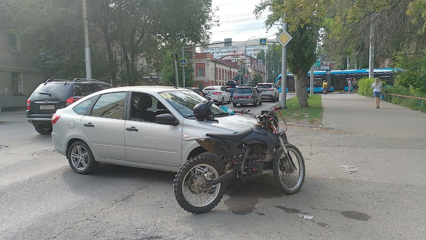 Сегодня вечером в центре Саратова столкнулись автомобиль «Лада Гранта» и питбайк Kayo K1. Об этом сообщили в городском отделе Госавтоинспекции.