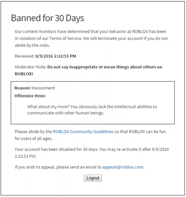 Ты получил бан в Roblox — и не понимаешь, почему? Давай разберём: 1 - 1 день