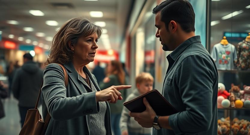 — Извините, — обратился он к ней. — Ваш сын не просил у кого-то игрушку в детском отделе?