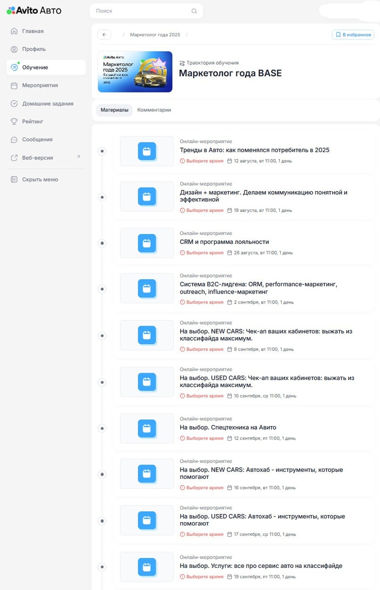 Авито Авто перезапустило собственную бесплатную LMS "Авиториум" на Эквиуме. Учат правильно работать на платформе. Там уже есть оцифрованные курсы от Бачаты и OK REVIEW. Конкурс Авито Авто (и Мото!) "Маркетолог года 2025" тоже проходит на этой образовательной платформе.