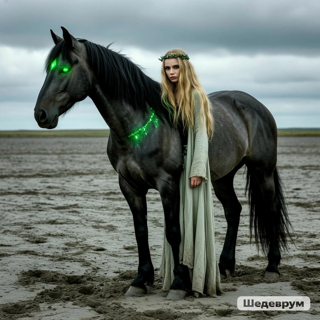 В этот раз девушка задержалась там чуть подольше., и успела увидеть окружающее: серая, покрытая пеплом равнина расстилалась вокруг, рядом с ней, едва ли не касаясь, стоял огромный конь.
