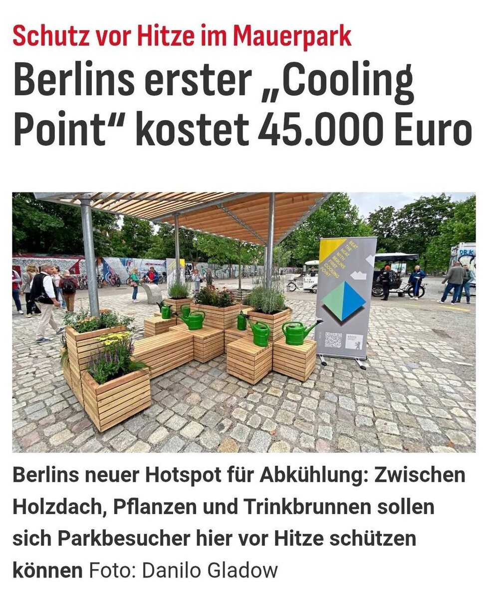🌞 🚿Освежающе и дорого В Берлине открыли первую «точку охлаждения от жары» — за... 45 000 евро 💶 Что входит в комплект: — деревянный навес, — кадки с цветами, — несколько леек с водой. Проект должен помочь горожанам пережить летний зной и «осознать важность устойчивой урбанистики». 🔥 Реакция берлинцев — от иронии до поддержки: «мило, но дорого». Некоторые уже называют это «архитектурным леечным шедевром». 🤔А вы бы посидели под таким навесом? @eNewsmd.online