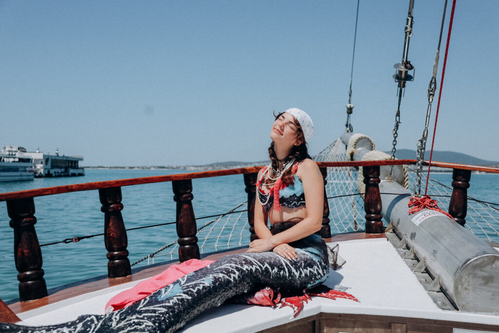 Перед тем как мы с фотографом Эльвирой поднялись на борт прогулочного судна, обратили внимание на загорелого блондина в тельняшке. Все в нем — от выцветших шорт до широкой открытой улыбки — соответствовало тому образу, что возникает в голове при слове «матрос». На самом деле Данилу Захарченко всего 18. Он студент 3-го курса колледжа в Ростове-на-Дону. Но этим летом его университет — это море, а аудитория — палуба прогулочного судна в Геленджике. Интерес к морю у него возник неожиданно, почти случайно. В семье моряков не было, но река Дон с ее широкой водой и тихими туманами позвала в путь. Когда учился в 8-м классе, отец однажды спросил, не хочет ли Данил пойти на флот. Так все и закрутилось. Парень загорелся, заглянул в себя — и понял: это его путь. С тех пор море стало не мечтой, а задачей: сдать, поступить, научиться, выйти в рейс. На судне матрос живет с апреля: спит, ест, работает в буквальном смысле на борту. Мы в марте сессию сдали, и в апреле нас уже распределили. Так и попал с