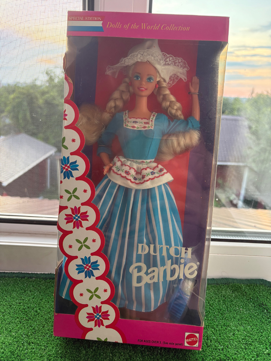 А вот и причина моего срыва с куклодиеты: Dutch Barbie из серии Dolls of the World. На мой взгляд эта серия очень классная и ее интересно собирать, ведь в ней очень много кукол и каждая из них имеет свою неповторимую индивидуальность. Больше всего из этой серии мне хотелось русскую Барби, голландскую Барби и итальянскую. С русской все понятно - она прекрасна, мила и близка душе, обязательно приобрету ее в коллекцию. Италия - это Тереза на моем любимом молде, и плюс я очень люблю итальянскую кухню: пицца, паста, лазанья… ну в общем, вы поняли, почему мне пришлось сесть на настоящую диету, помимо кукольной? 🤣 Голландскую куклу очень хотелось потому что в свое время мне очень понравилось путешествовать по Нидерландам. Там так спокойно и уютно! Поэтому захотелось приобрести куклу, которая бы напоминала об этих поездках. И вот она со мной. Эта кукла была выпущена в 1993 году… подумать только, она старше меня! Барби выполнена на распространенном в то время молде «Суперстар». И вы может