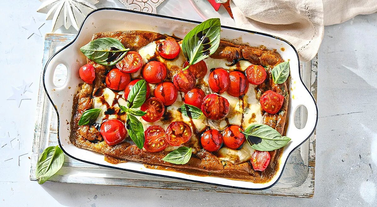 Это классическое итальянское блюдо представляет собой нечто среднее между пышным омлетом и аппетитной запеканкой. Оно легко готовится, выглядит эффектно и идеально подходит как для завтрака, так и для сытного ужина. Наш вариант рецепта вдохновлен знаменитым салатом капрезе, создавая гармоничное сочетание ярких вкусов свежих овощей и нежного сыра.