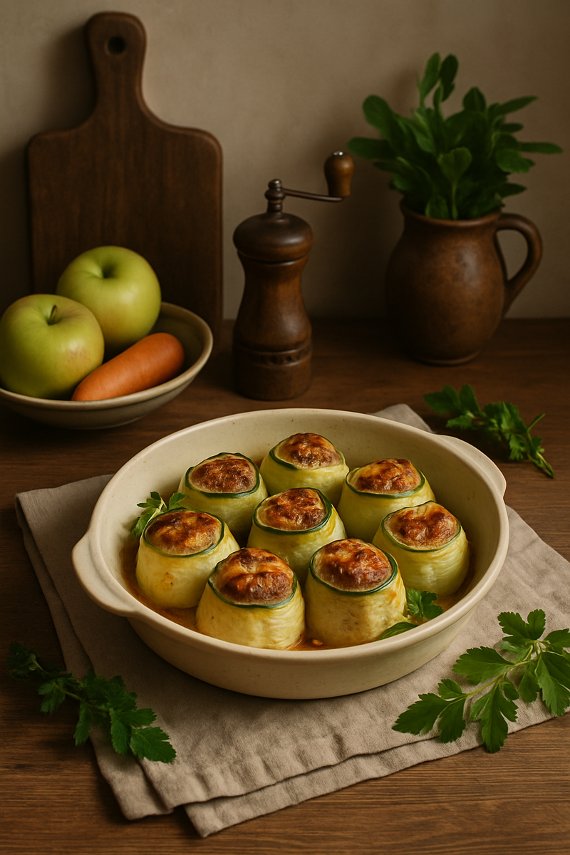 Дорогие друзья! Хочу предложить вашему вниманию аппетитный рецепт - рулетики из кабачка с фаршем в томатном соусе, запечённых в духовке. Блюдо, которое сочетается с уютным домашним вечером, ароматами средиземноморской кухни и заботой о здоровье. Есть блюда, которые дарят не только вкус, но и атмосферу. Эти рулетики из кабачка - именно такие: ароматные, сочные, с томатным соусом, впитавшим вкус пряных трав и мясной начинки. Они словно из итальянского ресторана, но готовятся просто - дома, с душой и удовольствием. Это блюдо понравится тем, кто ищет баланс: вкусно, но не тяжело, сытно, но без излишков калорий. А запечённая корочка и насыщенный соус сделают их фаворитом даже у тех, кто не любит кабачки. Для соуса: Подавай горячими, украшенными свежей зеленью. Отлично сочетаются с рисом, киноа, лёгким салатом или как самостоятельное блюдо. Эти рулетики из кабачка - настоящее гастрономическое объятие: сочные, насыщенные, ароматные. Они подойдут и на ужин, и к приходу гостей, и в меню пр