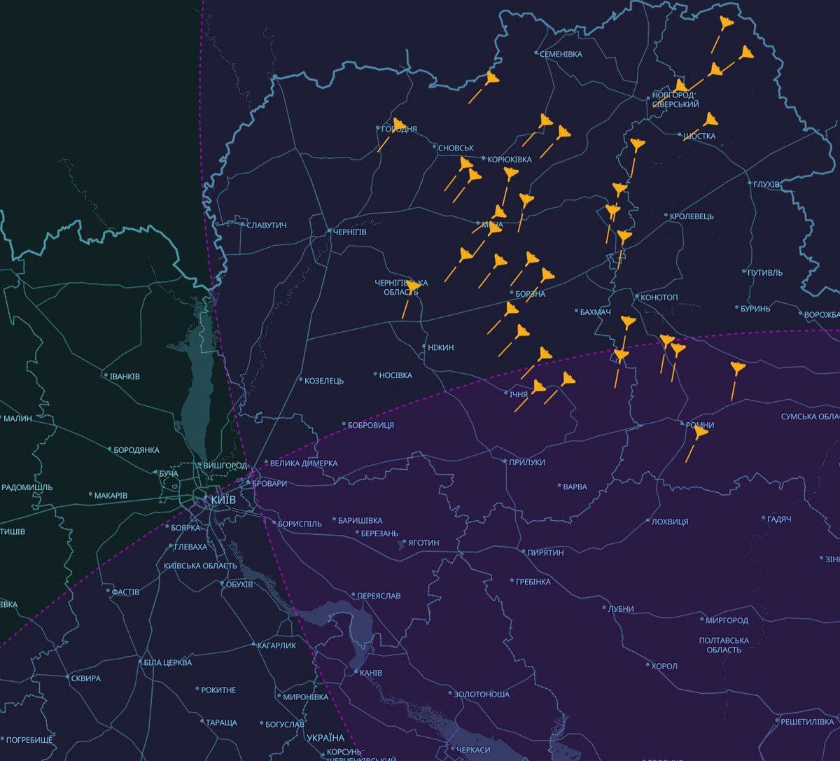 ❗️⚡️На маршрутах к целевым объектам в большинстве регионов Европейской части России пребывают несколько крупных нарядов БПЛА-"камикадзе