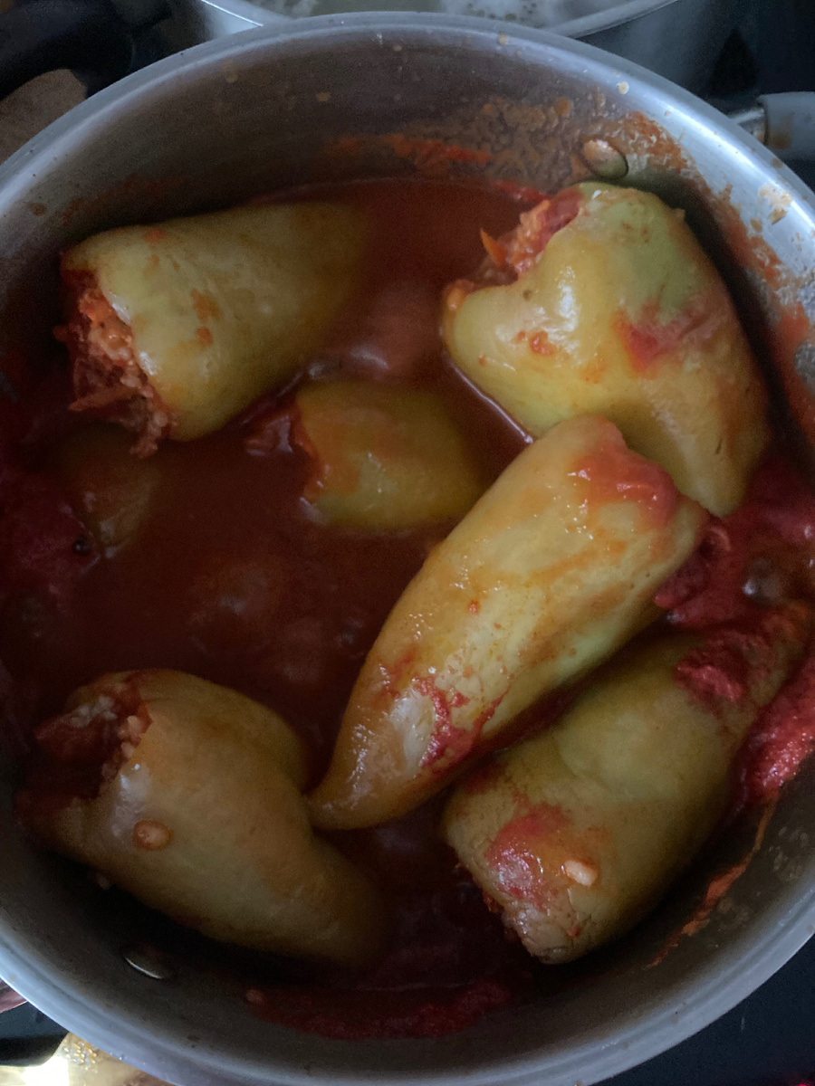 Я думаю все знают как готовить перчики. Но я вам напомню. Сначала хотела сделать без фарша, а потом нашла в холодильнике немного. Ну тогда добавила тоже. Мы один раз путешествовали в Загорск, а у всех был пост. Так захотелось есть и мы зашли в столовую при церкви. А там все постное. Взяли мы перчики без мяса, а там только рис , морковь , лук и томатная паста. Мне так понравилось, что стала сама так делать. Перчик помыла вырезала сердцевину вытащила семена. В миске смешала рис ( я взяла круглый ) фарш, морковь, соль , приправы. Зафаршировала перец уложила в кастрюлю и залила томатной пастой (две столовые ложки томатной пасты и вода) Много сырого риса. Я рис не варю.Готовлю перец примерно минут 30. Смешала начинку. Можно добавить обжарку в соус. (морковь, лук , перчик) Но мне надо облегчить блюдо по калориям. Хочу сегодня опять попробовать продержаться.