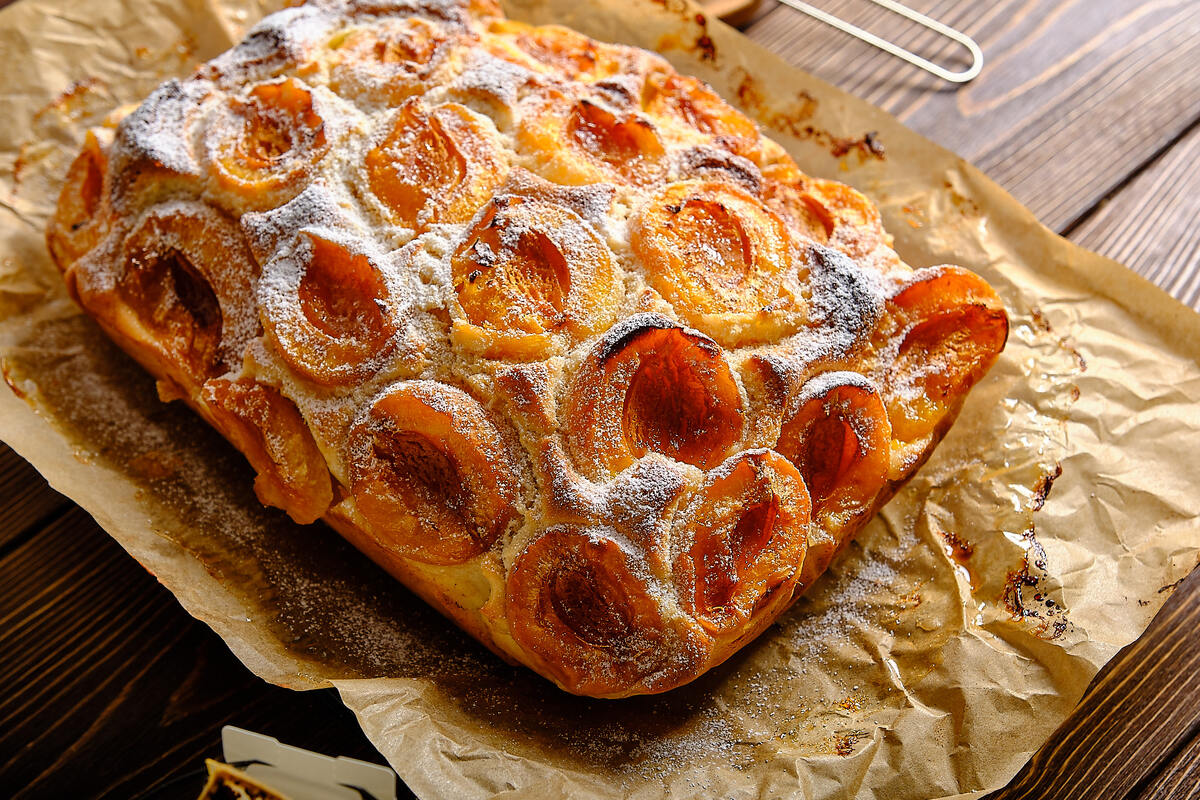 Нежный и вкусный, ароматный и быстрый в приготовлении, - этот пирог обязательно надо приготовить. Сезон фруктов в самом разгаре, меняем абрикосы на персики и продолжаем наслаждаться выпечкой к чаю или кофе. 1. Смешиваем в чаше яйца, сахар, соль, ванильный сахар, растопленное сливочное масло, сметану. 2. В отдельной чаше смешиваем муку и разрыхлитель. Добавляем мучную смесь к яичной и все доводим до однородной массы. 3. Перекладываем в форму. 4. Абрикосы режем пополам, укладываем на тесто и вдавливаем. Выпекаем при 180 градусах 40-50 минут. Готовность проверяем зубочисткой. 5. Подаем к столу с шариком мороженого или чашкой ароматного кофе. Приятного аппетита! Больше рецептов сладкой выпечки в подборке: