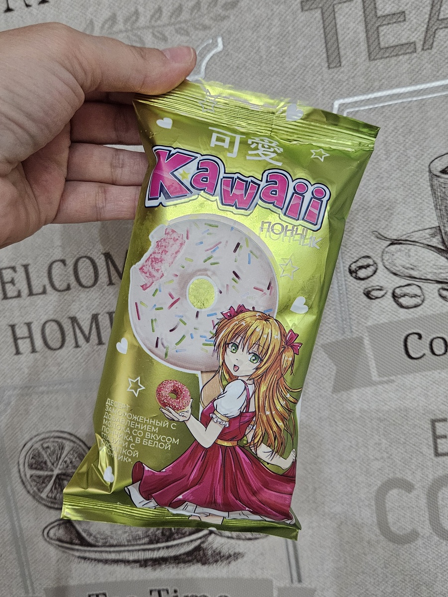 В запасе всегда есть мороженое в морозилке, особенно летом и я люблю пробовать новое. Увидела это чудо молочной промышленности и не смогла устоять. Мороженое Kawaii пончик А дома, ниже, прочитала, что это: Десерт замороженный с добавлением молока со вкусом пончика в белой глазури с посыпкой "Пончик" 🤣Уф, на одном дыхании, как Пушкина. Это как сыр и сырный продукт. Вроде и мороженое, а вроде и замороженное... что-то. Привлек пакетик, вообще. Яркий с анимешной девчулей и сам вид - пончик. Думала, что это будет вкусно. Маркетологи работают!)))) Срок годности у этого чуда аж 18 месяцев... Боюсь заглядывать в состав. Но заглянула. десерт: вода, сахар, молоко сухое обезжиренное, масло сливочное, эмульгатор моно- и диглицериды жирных кислот, камедь рожкового дерева, гуаровая камедь, каррагинан, ароматизатор, краситель кармин, глазурь белая: кокосовое масло, сахар, молоко сухое цельное, сухая молочная сыворотка, эмульгатор лецитин соевый, ароматизаторы, посыпка кондитерская: са