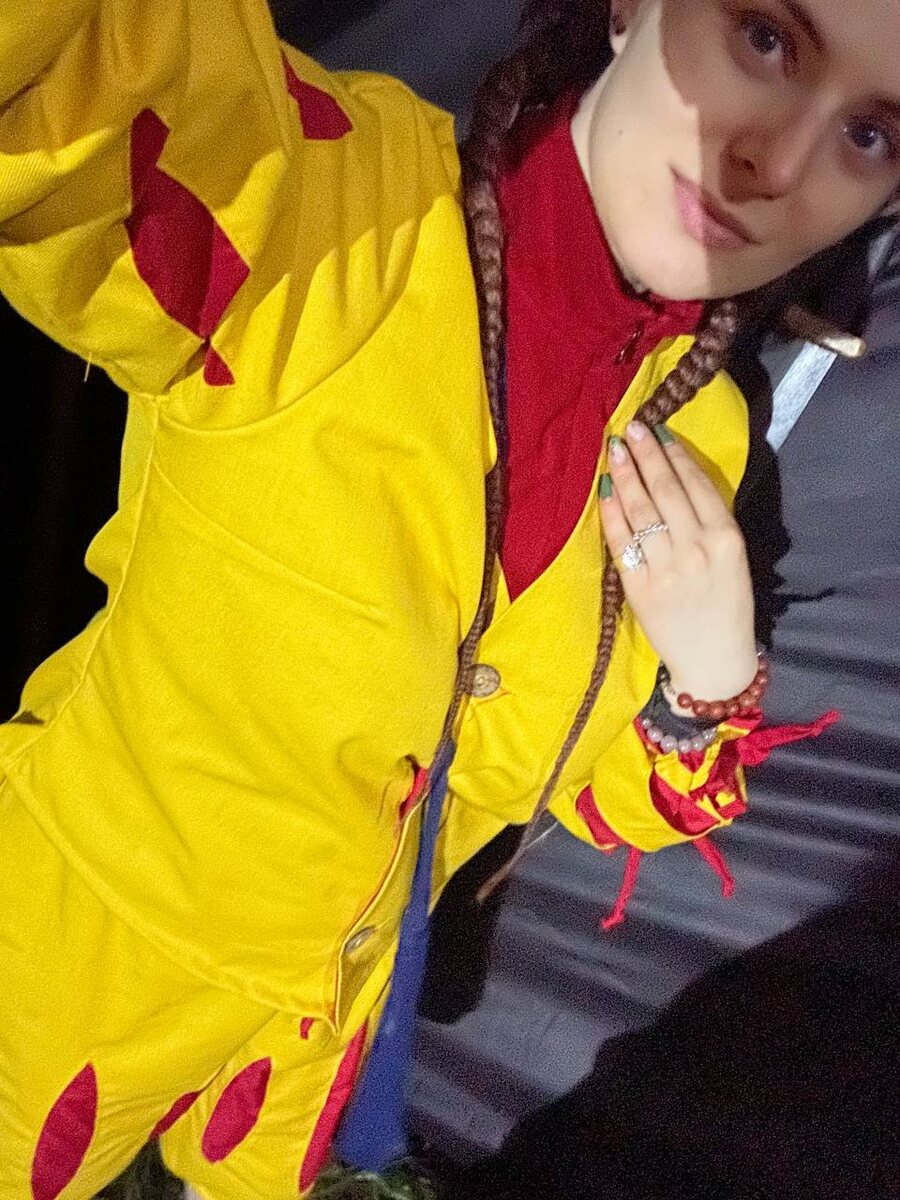 Селфи с этой игры не вошли в мой прошлогодний флешмоб #королеваполигона, так как я полагала, что на страницу стоит выкладывать либо профессионально сделанные снимки, либо не выкладывать ничего. Но опыт показал, что лучше выложить селфи. К тому же, я была с такими шикарными боксёрками, сплетёнными Дракошей. Как ими не похвастаться? 😉 Правда с игры у меня очень противоречивые впечатления. Во-первых, я еле-еле до неё добралась. Если бы не поддержка Джеки, которая была со мной на связи всё время, пока я добиралась на периодически останавливающейся электричке, а потом поймала меня в объятия и довезла до полигона, я бы не доехала вообще. Во-вторых, меня триггерило, что я обуза для команды. Чего только не произошло за эти полтора дня (я приехала не к старту игры, так как работа)! Например, лежим мы ночью в засаде за палаткой инквизиции, как вдруг у меня начинает звонить будильник, напоминающий о том, что мне пора спать.😅 Напарник хохочет и говорит: «С тобой только в разведку ходить!»