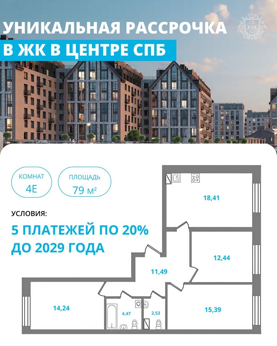 🤫 Жить в центре Петербурга и не влезать в ипотеку — возможно Рассрочка 5×20% до 2029 года Без банка, без процентов. Когда в семье несколько детей, важна не только площадь, но и спокойствие. В этом проекте можно купить квартиру с комфортной рассрочкой, которая не перегружает бюджет. ➡️Условия простые: — первый взнос — 20% сейчас — далее по 20% в год: 15.01.2026 15.01.2027 15.01.2028 15.01.2029 Никаких процентов, одобрений или кредитов. Вы фиксируете стоимость — и платите частями до 2029 года. 🏙 Что важно для семьи — здесь есть: — центр Петербурга, всё рядом: школы, Мариинский театр, Новая Голландия, Никольский собор — закрытые дворы без машин — дети в безопасности — квартиры с террасами и панорамными окнами — потолки до 5 метров — просторно и светло — общественная терраса с видом на Неву ☄ Про квартиру: — Просторная 4Е площадью 79 м2 — Кухня гостиная — 18,41 м2, где комфортно собираться всей семьей за вкусным ужином — Два санузла, один из которых с полноценной ванной — очень