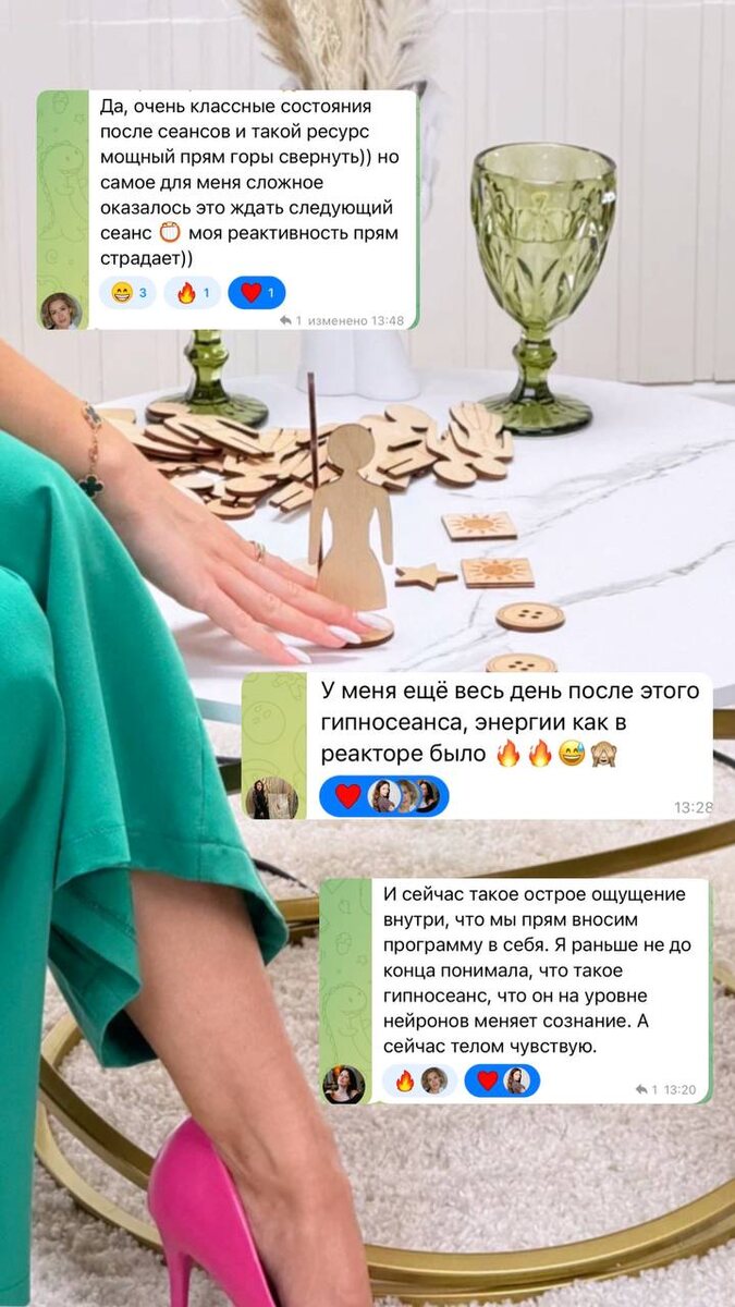 НАШЛИ СЕБЯ. ОСТАЛОСЬ ДАТЬ СЕБЕ ПРАВО ЗАЯВИТЬ ОБ ЭТОМ В МИР. ⬇️⬇️⬇️ До нашей первой сессии клиентка зарабатывала на жизнь ТОЛЬКО МАССАЖЕМ , что является довольно тяжелым физическим трудом. И…не особенно зарабатывая на своей деятельности, а уставала порядочно. Дома скандалы: «ты все время работаешь. А в чем смысл?!». До сессии клиентка искренне не видела, игнорировала и боялась признаться в своих уникальных талантах. Она потрясающе правит жизнь людям через тело: ✅Телесная терапия, ✅ Кинезиология ✅ и какие-то лично ее удивительные фишки, ✅ а также повышенная чувствительность, доставшаяся от предка-шамана в роду. *** Сегодня работали с правом заявить о себе в новом качестве. А это значит: 🔥 стоимость сеанса Х3-Х5, потому что то, что она делает не может стоить меньше. 🔥 Это значит больше свободы 🔥 Больше кайфа!!!! 🔥 Больше счастья! И 🔥 В разы меньше усталости #кодРеализации #предназначение #реализация #деньги