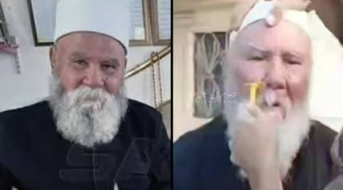 На фото выше боевики сбривают усы 80-летнему шейху Мархаджу Шахину, который по неосторожности не покинул свою деревню А-Таалу, когда к ней