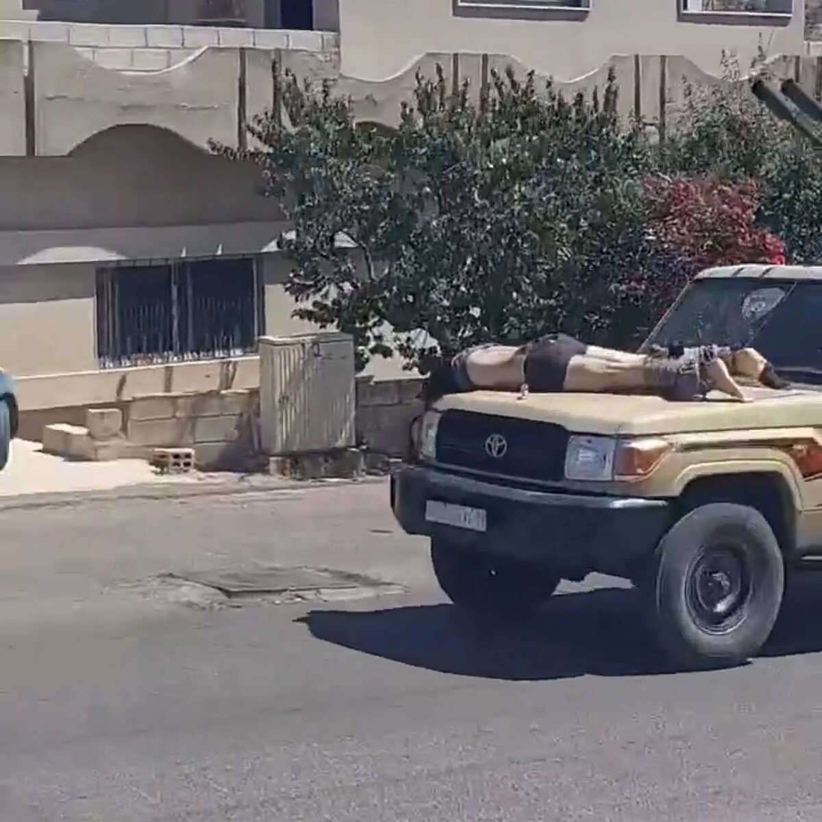 Друзские боевики демонстрируют тела убитых противников на капотах своих автомобилей
