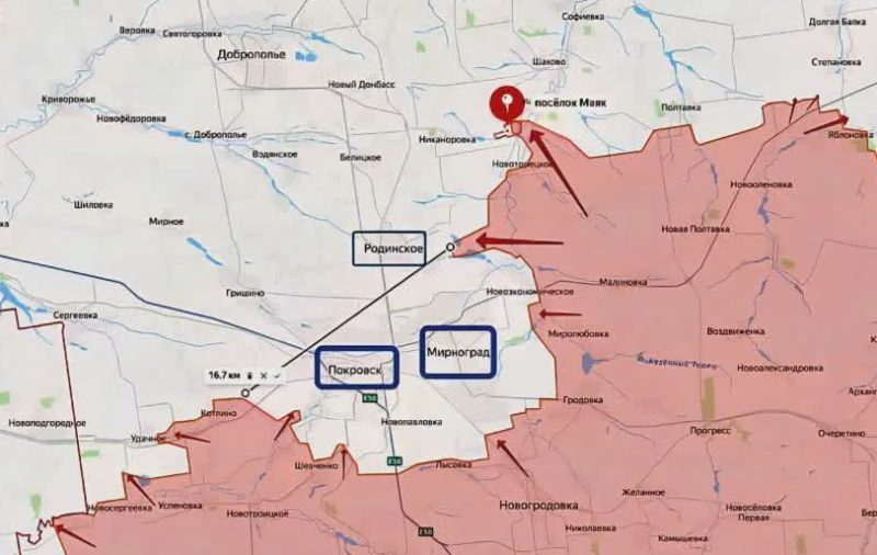 Российская армия стремится перерезать последнюю дорогу, по которой снабжается группировка ВСУ в Покровске и Мирнограде. Об этом в эфире видеоблога Politeka заявил полковник СБУ в отставке, военный эксперт Олег Стариков, передаёт корреспондент «ПолитНавигатора». «Русские нашли наше слабое место. Сначала били в лоб на Покровск – не получилось, именно на западном фланге. Нашли слабое место на восточном фланге.И вот теперь образовалось новое направление, Доброполье. А вот движение сейчас идет – Родинское, которое обходит Мирноград с севера. Покровско-Мирноградский укрепрайон – это большая агломерация, и там все переходит друг к другу. Это большой укрепрайон.Так вот… они зашли с западного, и вот подходят к этому населенному пункту, Родинскому. И самое главное – Доброполье. Почему опасно? Это действительно развивается настоящий тактический кризис на покровском направлении. И он может перейти в оперативно-тактический», – сказал Стариков. «Чем оно опасно? Там две дороги. Дорогу западную они уж