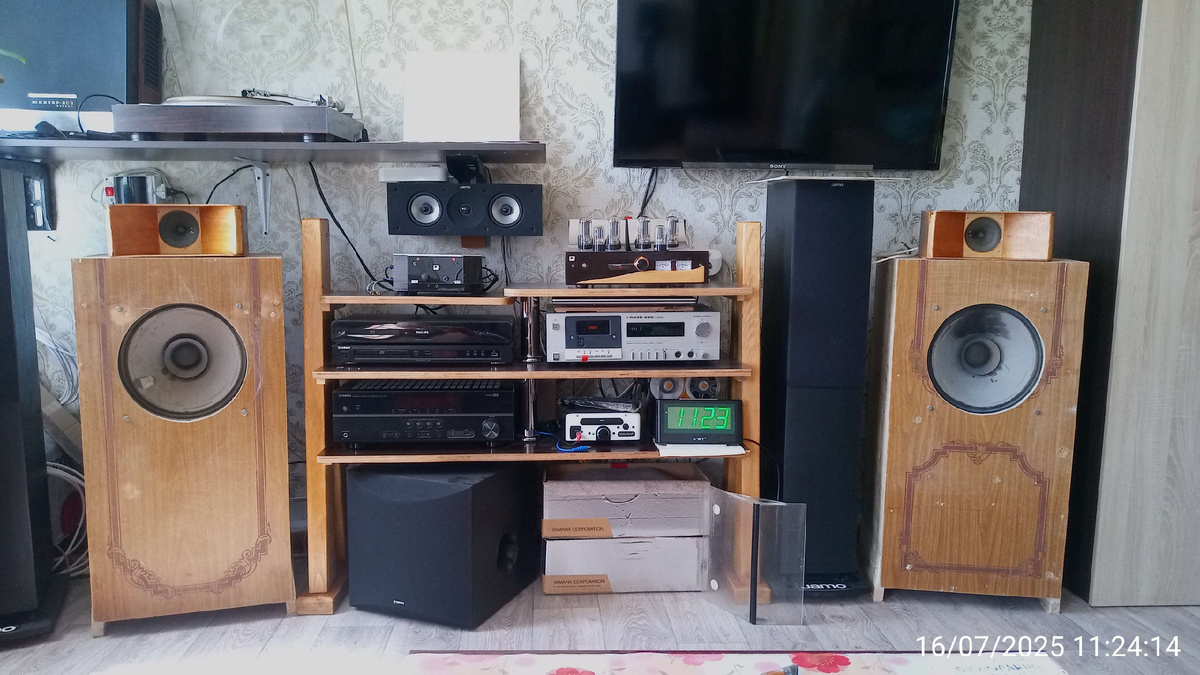 Сначала опишу результат испытания новой акустики. А точнее, на динамике 4А-32в. На предыдущей сборке поставил динамик 4А-32 без буквы. На податливость диффузора с буквой "в" оказался мягче. По ощущению, звук как будто ближе стал. хотя и разница небольшая. И для расширения диапазона, естественно, сверху придумал рупор ВЧ. Под рукой были пищалки от Веговской акустики 3ГД-31. По всем правилам, конденсатор на этот динамик ставят 2 мкф. припаял, подсоединил... и тут выяснилось, что "подпевать" как следует он отказался. Нашёл параметры на этот динамик. Чувствительность 90 Дб. Видимо мощность лампы не может раскачать эту пищалку. Лампа не транзистор. Ещё добавлю, что с лампой пьезо динамики тоже неадекватно работают. Вообщем, увеличил конденсатор. Остановился, после экспериментов, на 5 мкф. Керамику не нашёл. Соединил электролиты встречно последовательным соединением 10 мкф. ВЧ добавило, но всё равно не удовлетворило . Придётся заказывать на алийке такие же динамики, как на старой ак