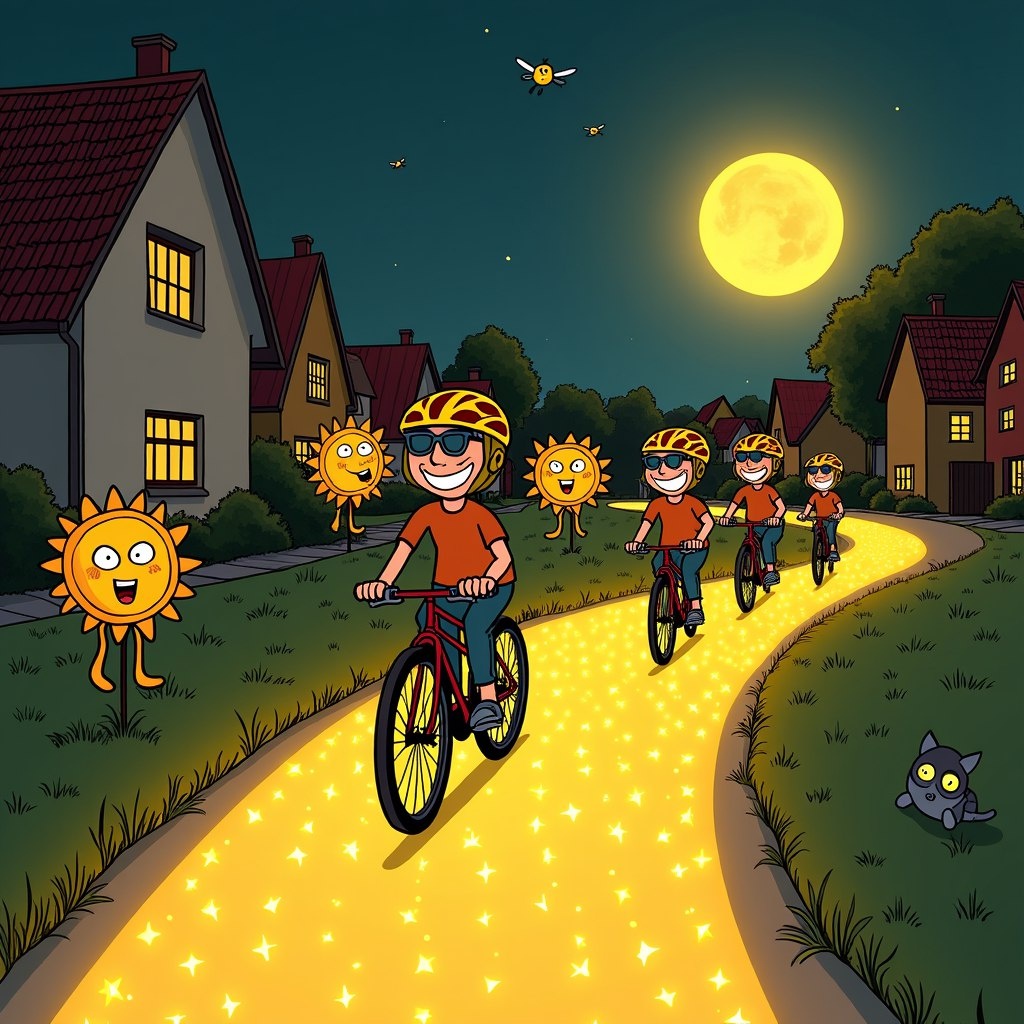 В Бельгии есть светящиеся велосипедные дорожки, которые заряжаются от солнца днём и сияют ночью.