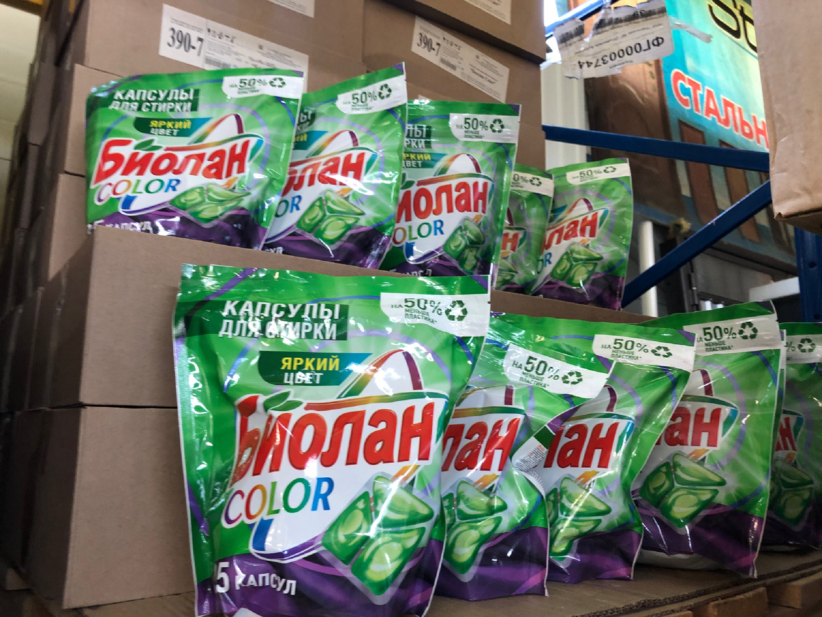 В продаже есть гелевые капсулы для стирки цветного белья Биолан колор Яркий цвет. Эти капсулы водорастворимые, растворяются при стирке полностью. Не оставляют разводов на белье. Хорошо отстирывают и оставляют приятный аромат чистого белья. В упаковке 35 капсул. Цена 314 рублей.