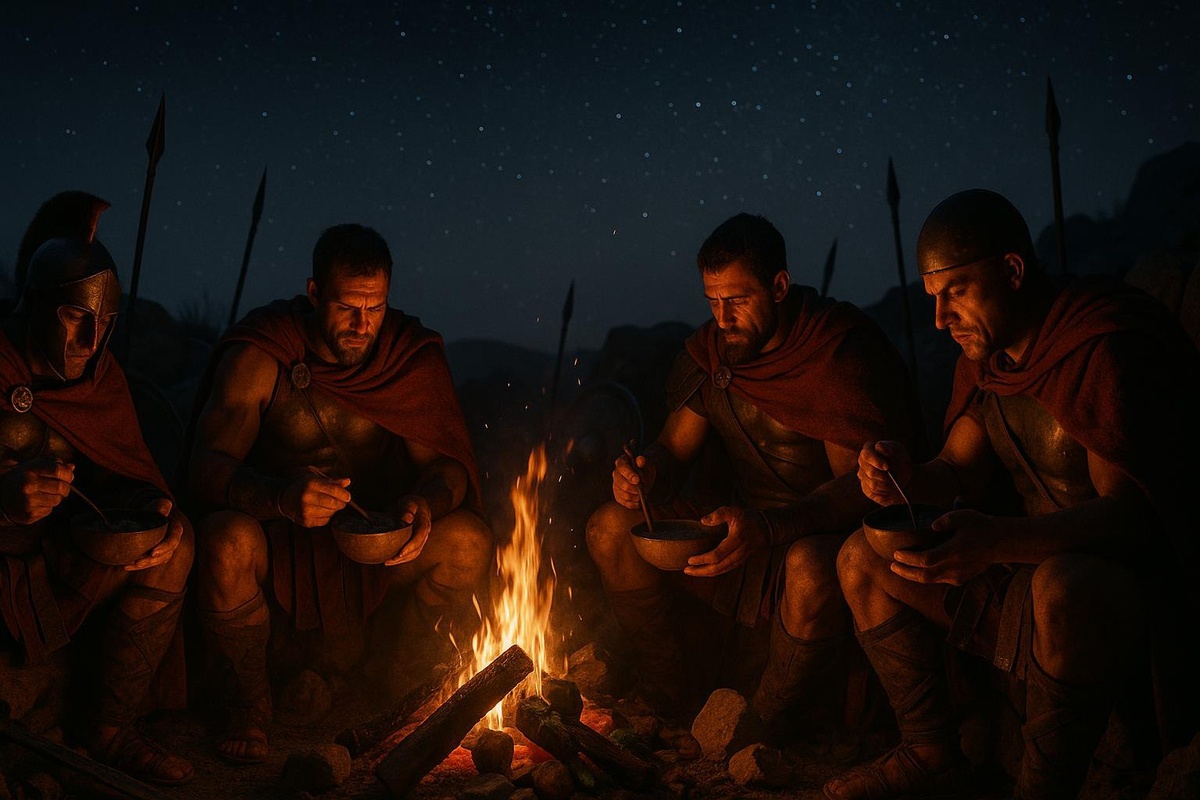 Представь себе: завтра тебе идти в бой. Жизнь или смерть. А командир говорит: «Эй, никакого мяса! Только каша да овощи». Звучит дико? Но именно так поступали воины по всему миру на протяжении тысячелетий. И знаешь что? У них были чертовски веские причины. Ночь перед битвой при Фермопилах. 300 спартанцев точат копья под звездами. Костры горят, но запах жареного мяса не витает в воздухе. Вместо этого — простая ячменная каша и немного оливок. Это не бедность. Это система. Римские легионы перед штурмом Карфагена питались хлебом и бобами. Самураи в Японии накануне сражения ели только рис и овощи. Викинги — те вообще физически офигели — переходили на рыбу и злаки. Что за странная традиция? Ведь логика подсказывает: воину нужно мясо! Белок! Силу надо где-то брать! Вот что думает большинство людей: «Воины не ели мясо, потому что были религиозными фанатиками». Или: «Мясо было дорогим, вот и экономили». Полная ерунда. Мясо было. Религия — да, играла роль, но не главную. А настоящая причина леж