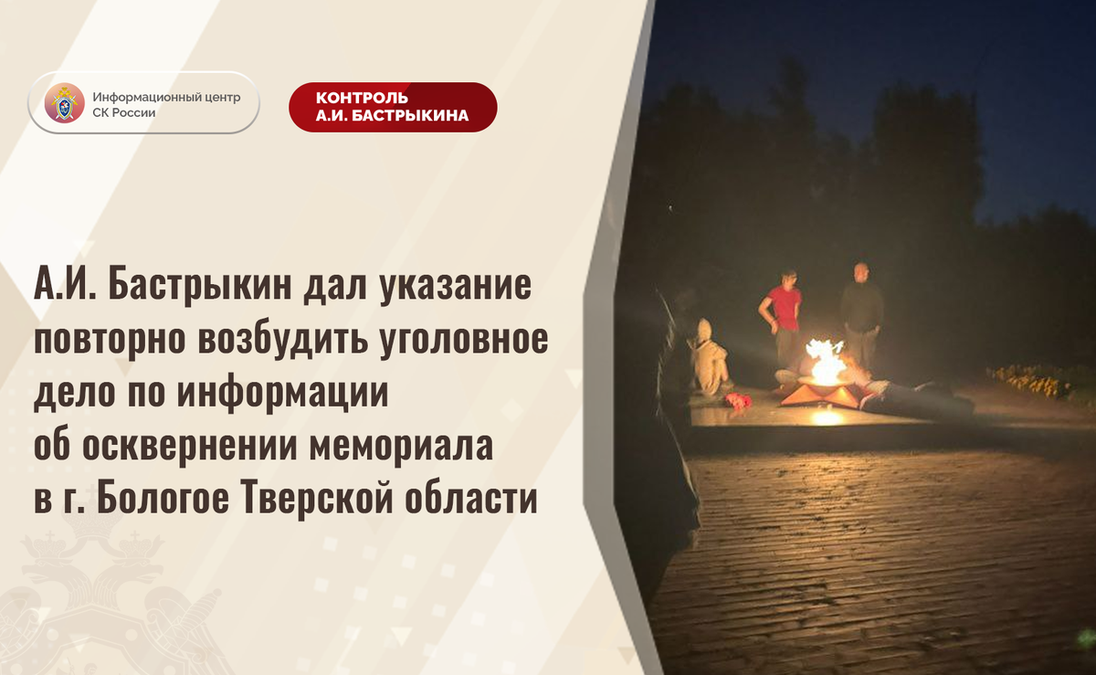 А.И. Бастрыкин дал указание повторно возбудить уголовное дело по информации об осквернении мемориала в г. Бологое Тверской области