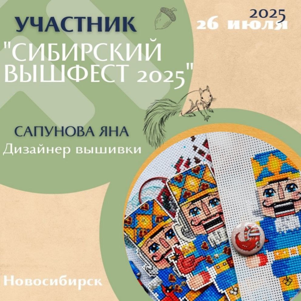 Мы с Наталией будем рады видеть всех 26 июля в Новосибирске по адресу ул. Восход, 15. На Сибирском вышфесте 2025 На фестивале в Новосибирске нашем стенде Hobby-stitch будут представлены товары: Наборы для вышивания нескольких серий: 1. Яркие щелкунчики 2. Весенние гуляния 3. Задорные оперные певицы 4. Имбирный поезд 5. Бисерные матрёшки 6. Новые наборы 🤩 Мои книги издательства Хоббитека: 1. Книга "Вышиваем елочные игрушки. 27 схем для вышивки" 2. Книга "Ребята нашего двора" 3. Книга "Герои сказки Щелкунчик" - наша новинка/ С удовольствием подпишу книгу для вас! Авторские деревянные щелкунчики. Они яркие и большие. Имеют интересную с конструкцию крепких челюстей - без рычага! До встречи в Новосибирске, обнимаю! Продажа билетов уже идет https://vk.com/siberianstitchfest До встречи!