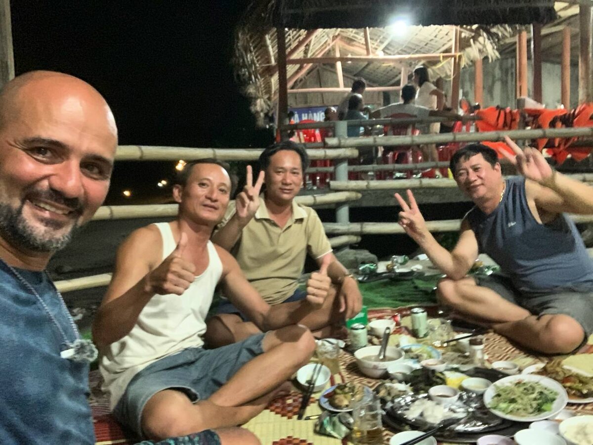 Очередное вьетнамское гостеприимство. Выхожу вечером из ресторана на берегу моря — а тут меня зовёт за стол владелец. Ну вот так и прошёл вечер. Сижу, пробую разные морепродукты под пиво, вокруг весёлая компания, болтаем через переводчик, но всё равно весело. А самое интересное начнётся завтра. Меня утром пригласили на какой-то обряд. Что-то типа крещения ребёнка. И там будут подавать один из самых дорогих и ценных ингредиентов в мире. Честно говоря, я даже не мечтал такое попробовать. Пока не скажу, что именно это будет — расскажу отдельно. Но вот вам и Вьетнам: туристическое место, морской берег, а в итоге сидишь с местными за одним столом и через пару часов уже попадаешь в их жизнь.