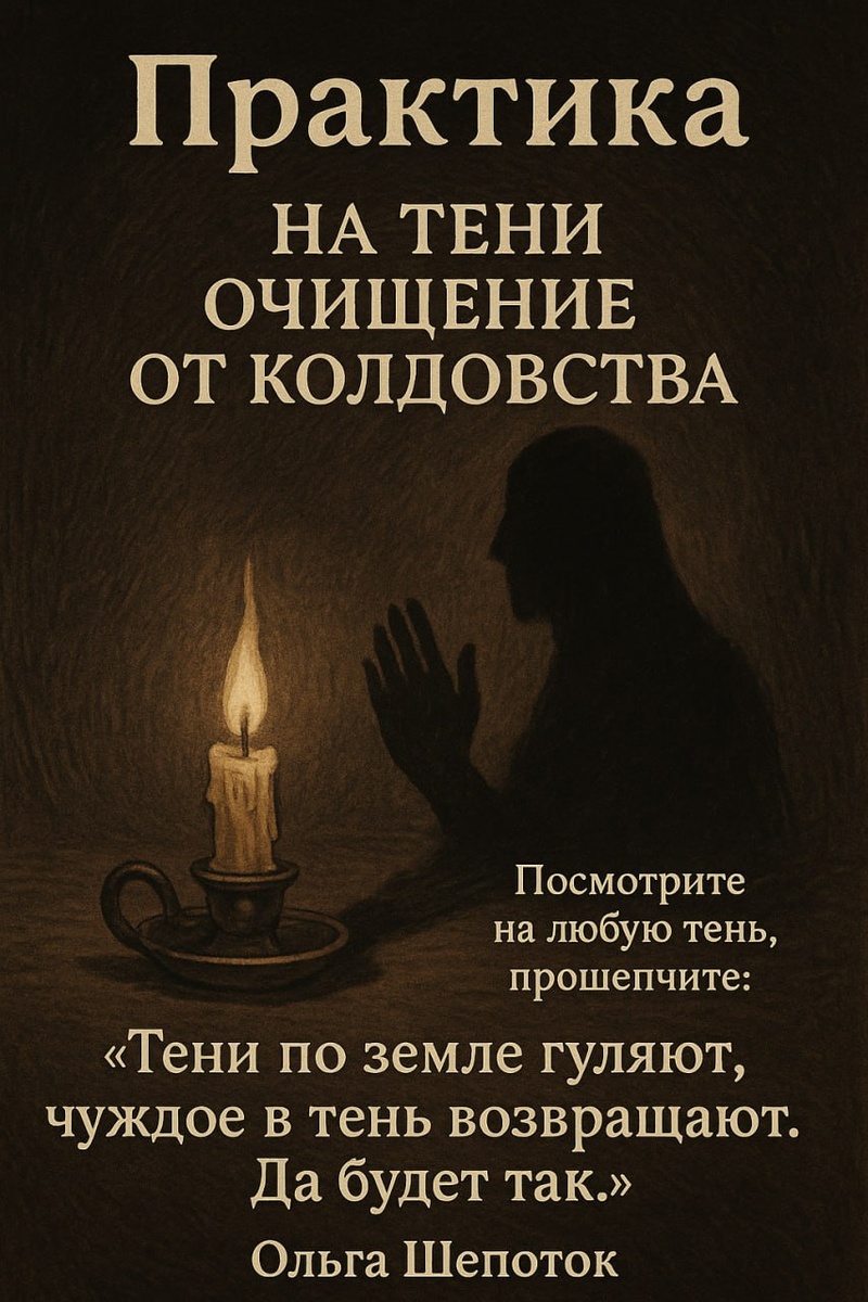 Тени — не случайность. Это древние союзники, что знают ходы между мирами. Они уносят чужое без шума, без следа — в своё, сакральное. Шепоток лишь открывает врата. Остальное делает Тень. Это мягкая практика очищения от наведённого — не через борьбу, а через естественный ход вещей. Тени знают, что не твоё, и умеют забирать это обратно в свои пространства. Ты просто смотришь, замечаешь, признаёшь. А дальше — шёпот и тени делает своё. Шепоток активирует тонкую силу возврата: всё, что было послано — чужое, несвоевременное, колдовское — уходит туда, где его дом: в тень. Эта практика работает особенно сильно на закате, в местах, где тень ложится длинно — под деревьями, у порогов, в полумраке. Но и тень от облака на стене — тоже знак, тоже врата. Остановитесь на минуту. Посмотрите — где сейчас лежит тень? Это может быть тень от облаков, от дерева, от чашки на столе или от вашей собственной руки. Любая. Вглядывайтесь не в то, что отбрасывает тень, а в саму тень. Она — ход вещей, дыхание гл