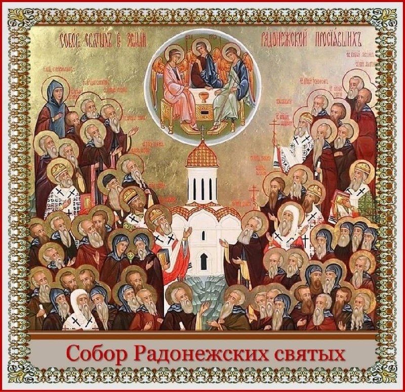 Собор Радонежских святых — праздник Русской Православной Церкви, установленный в память святых сродников, учеников и собеседников преподобного Сергия Радонежского, а также святых иноков Троице-Сергиевой обители. Празднуется 6 июля (19 июля). 🕊Первые списки учеников преподобного Сергия были составлены в XVII веке. 10 июля 1981 года по благословению Святейшего Патриарха Московского и всея Руси Пимена (Извекова) было установлено празднование Собора Радонежских святых, совершаемое 6/19 июля — на следующий день после праздника в честь обретения мощей преподобного Сергия Радонежского. 🕊 Поименный список Собора Радонежских Святых