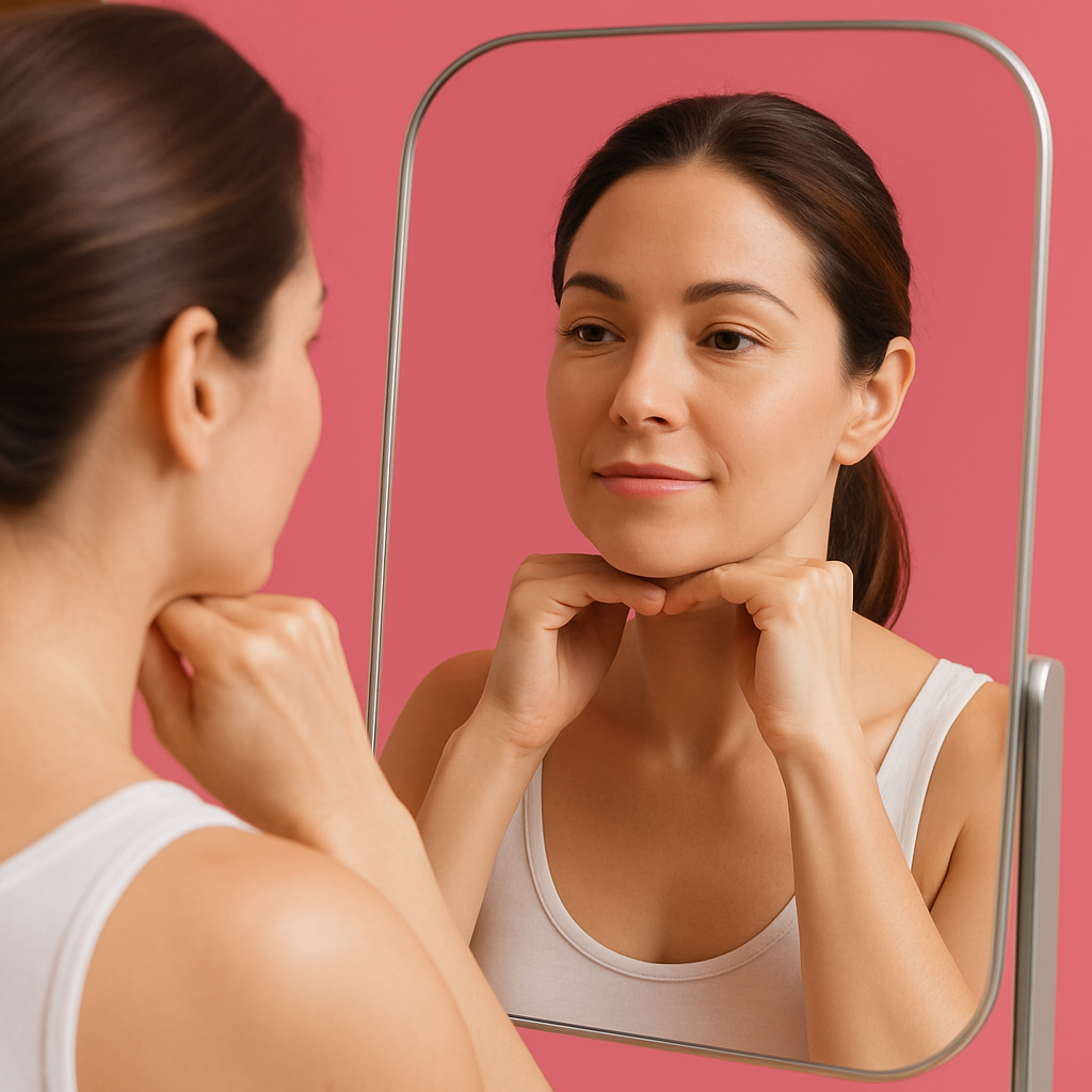 Чувствуете, что лицо потеряло форму? Подбородок «поплыл», появились брыли? Рассказываю, как без пластики вернуть чёткий овал лица с помощью домашних и простых способов. Наверняка вы замечали: ещё вчера контуры лица были подтянутыми, а сегодня отражение в зеркале уже не радует. Подбородок стал менее чётким, появились носогубные складки, а щеки начали «сползать» вниз. Всё дело в естественных процессах старения: В итоге линия подбородка становится менее выраженной, а лицо приобретает «уставший» и расплывчатый вид. Но хорошие новости в том, что есть способы вернуть чёткость без радикальных вмешательств. Наше лицо состоит из множества мышц. И если их не тренировать, они слабеют, как любые другие. Фейсфитнес помогает: Так вы тренируете круговые мышцы рта и нижнюю треть лица. Это отлично укрепляет подбородок и предотвращает его обвисание. Ежедневный лимфодренажный массаж помогает убрать лишнюю жидкость, разгладить кожу и вернуть чёткие контуры. Дополнительно можно использовать скребок гуаша и