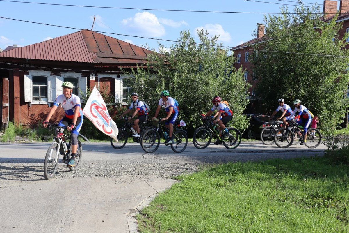 Хлебом-солью встретил город Боготол участников всероссийского велопробега «Две Победы», организованного Российским профсоюзом