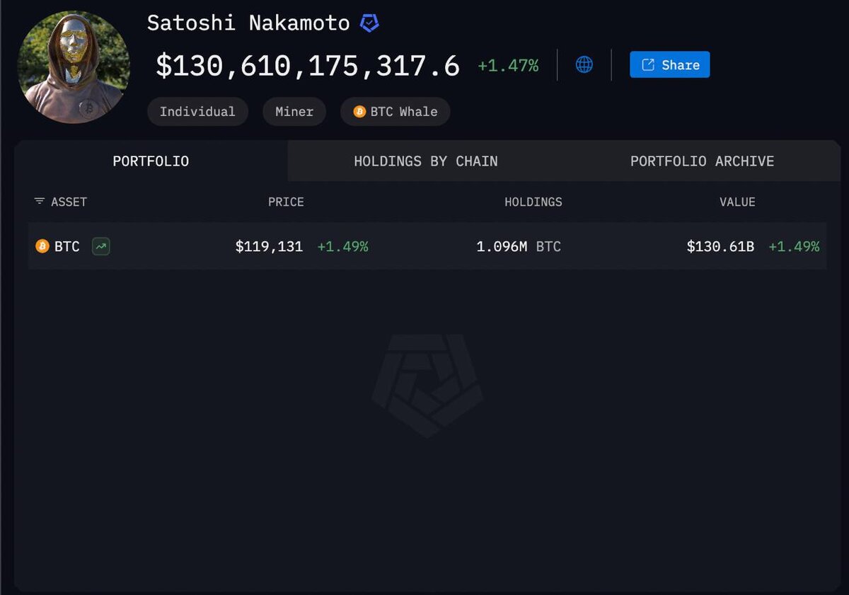 ⚡️ BREAKING: Satoshi Nakamoto is sitting on a whopping $130B in Bitcoin! 💰 That would land him as the 11th richest person on the planet