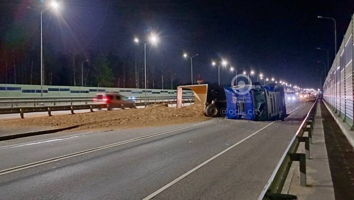 Ночью на 55-км Минское шоссе (дублере) столкнулись такси и фура Таксист вылетел на встречную полосу и столкнулся с грузовым автомобилем, который впоследствии перевернулся и рассыпал груз по проезжей части. Водитель грузовика не пострадал, а таксиста увезли на скорой с переломами позвоночника и бедра (по предварительной информации). Источник