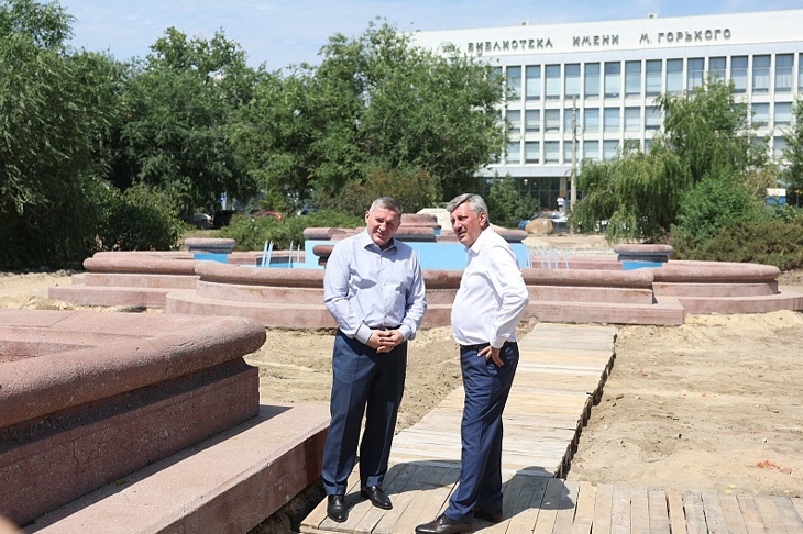 19 июля губернатор Андрей Бочаров нагрянул с инспекцией в сквер имени В.Н. Симбирцева. Глава региона решил лично оценить ход работ по реконструкции зоны отдыха, где вот уже несколько месяцев пытаются вернуть к жизни огромный фонтан. Накануне визита главы региона специалисты взялись за демонтаж старой тротуарной плитки, а также лестницы, примыкающей к ул. Мира. Кроме того, здесь появился паспорт объекта и ограждение. Во время осмотра городские власти доложили губернатору о 60% готовности фонтана. По данным муниципалитета, подрядная организация приступила к работам с благоприятными погодными условиями и уже выполнила работы по демонтажу старого покрытия чаш, установке нового насосного оборудования и гидроизоляции. Впереди работа с коммуникациями и дополнительное укрепление чаш. Кроме того, в течение года здесь появится ещё один фонтан. Он расположится вместо клумбы, примыкающей к памятнику Григорию Засекину. Одновременно в сквере начались работы и по комплексному благоустройству. Это отд