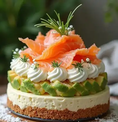 В этом чизкейке благодаря авокадо, лососю и свежему сыру сочетаются белки, полезные жиры и витамины. Он богат омега-3 жирными кислотами и клетчаткой, что делает это блюдо не только вкусным, но и питательным. Всем желаю приятного аппетита!