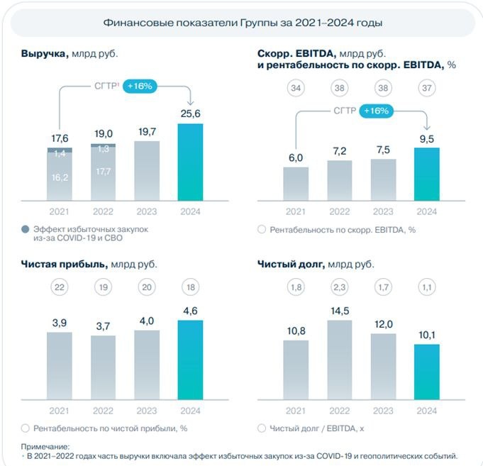 ➕ Всех излечит, исцелит... Озон Фармацевтика. Отчеты МСФО за 2024 г. и 1 квартал 2025 г. ❗️Группа «Озон Фармацевтика» не имеет отношения к маркетплейсу Ozon. ℹ️ Основана в 2001 г. в Жигулевске Самарской области. Лидирует среди российских производителей лекарств в сегменте небрендированных дженериков по выручке и объемам продаж в упаковках. Заводы находятся в Жигулевске и Тольятти. Количество сотрудников - 2500 человек. ⚡️17 октября 2024 г. компания провела IPO на МосБирже, продав 98,6 млн акций по 35 руб на сумму 3,45 млрд руб, получив рыночную оценку 38,5 млрд руб и объявив, что на горизонте нескольких лет не имеет планов осуществлять дополнительные размещения акций. ✔️Чистая прибыль за 2024 г. = 4,6 млрд руб или 4,2 руб на акцию (+15% к прошлому году). Выручка выросла на 30%, скорректированная EBITDA – на 27%. Свободный денежный поток сократился на 61%, капитальные затраты увеличились в 6,1 раз. ✔️Чистая прибыль за 1 квартал 2025 г. = 0,99 млрд руб или 0,9 руб на акцию (+28% к п