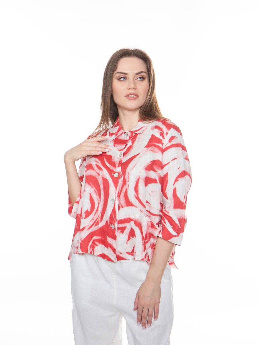 Рубашка-жакет VETONO Красный цвет, 100% лен — насыщенный, но благородный. Контрастный белый цветочный принт напоминает крупные бутоны роз и добавляет образу легкости. А-силуэт подчеркивает женственность и визуально выравнивает силуэт. Рукав длиной 1/2 делает модель идеальной для теплых дней — носи на голое тело или в сочетании с лёгким топом. С чем комбинировать? С классическими брюками или юбкой — для офиса. С джинсами и кедами — для расслабленных городских образов. Для оптового сотрудничества пишите нам: 📲-в директ 📲-по номеру 8 800 511 51 95 📲- +7 495 146-92-72 📲Наш сайт — https://sollery.pro ✉️-на почту info@sollery.fashion