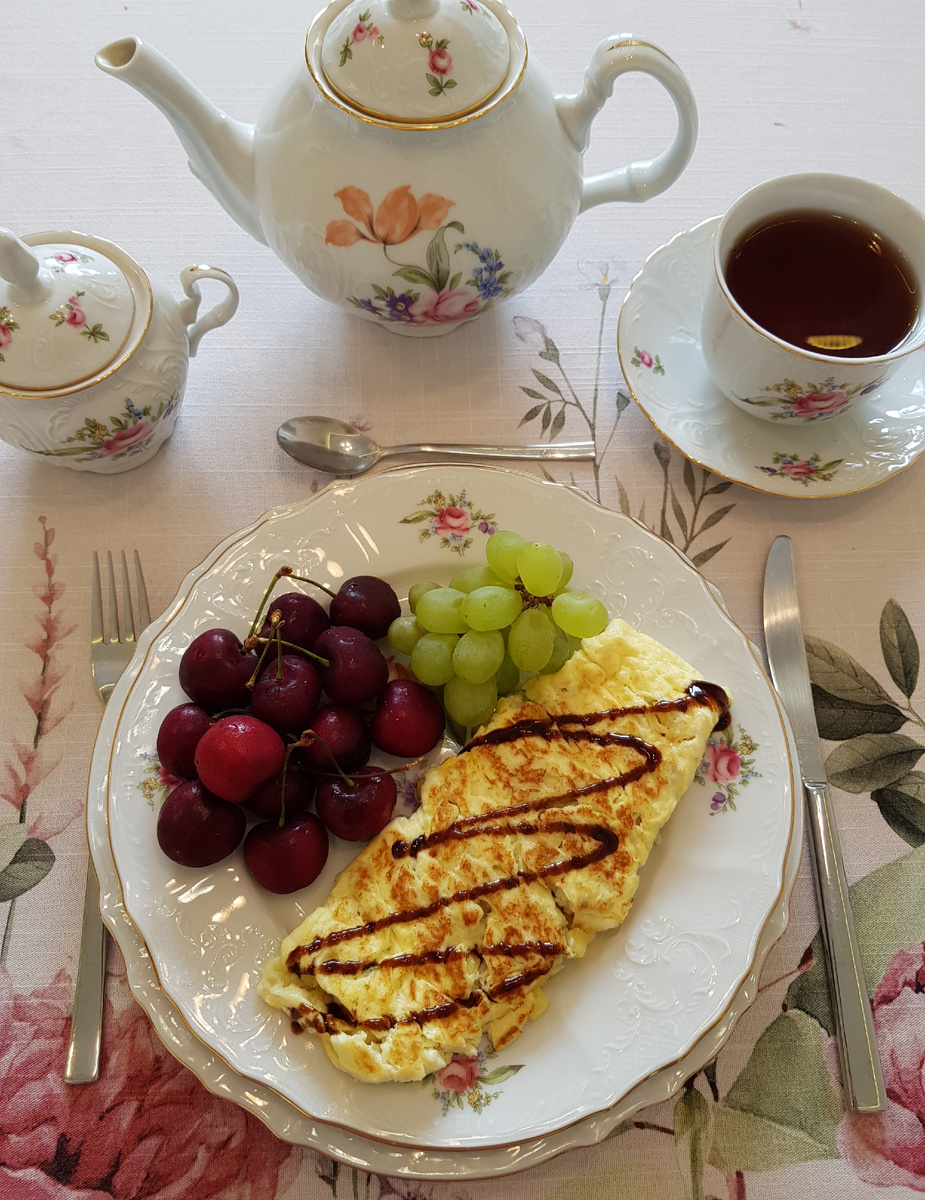 А я предлагаю дополнить данный омлет свежей черешней, виноградом и бальзамическим соусом.