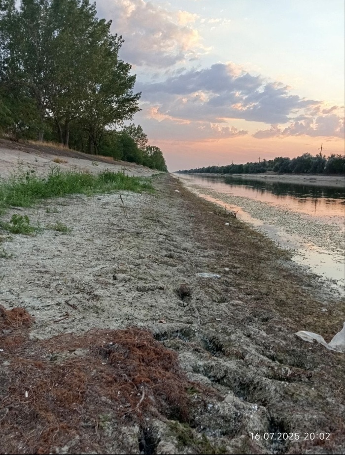 Запорожская и Херсонская область тоже с проблемой пересыхания водоемов. Всё из-за пробитой плотины на казовской ГЭС. Раньше из Каховского водозранилища шли каналы из которых шло орошение полей, а в конце сезона каналы спускали воду в речки. Кстати реки Конка и Крынка тоже соединялтсь с Каховским водохранилищем. Из-за отсутствия полива такие культуры как: подсолнечник, пшеница, арбуз, рис, помидоры в этих областях дают сплошной неурожай. Некоторые фермеры просто перепахивают моля с зерновыми культурами, така как то количество зерна которое выросло на поле не покроит даже стоимости уборки комбайном. Вид Каховского магистрального канала возле села Велетневка. Вода ушла метрров на 5. Рукава которые отходили водными артериями по всей Таврии вообще сухие. Подписаться на Пикабу Познавательный. и Пикабу: Истории из жизни.