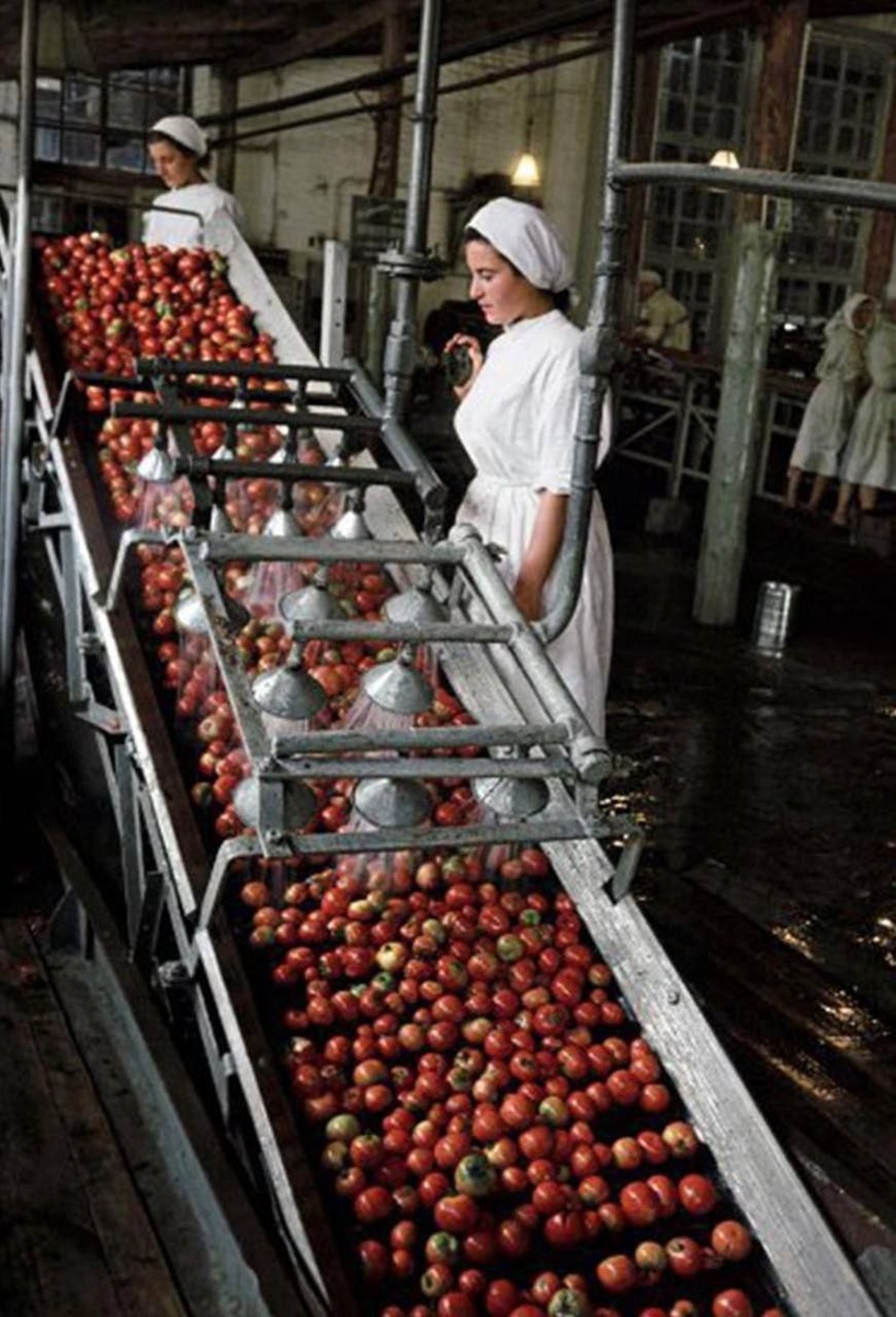 📸Кадр эпохи: Тирасполь, 1953 год Архивное фото из томатного цеха Тираспольского консервного завода им. 1-го мая: свежие помидоры проходят стадию мойки на элеваторной машине. 🚿 В СССР чистота — это не просто гигиена, а производственный стандарт. 🔧 Машины обрабатывали тонны томатов в день. 🧑🏭 Рабочие следили за каждым этапом — от мойки до упаковки. @eNewsmd.online