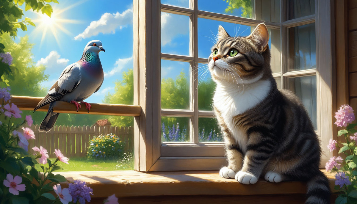 16.07.2025. 5:00. Утро началось с традиционного визита Гоши. Этот голубь, как всегда, принёс свежие новости и почтовую весточку. После краткого доклада я отправился проверять свои владения. К моему удивлению, в мисках уже был корм — видимо, хозяйка решила исправиться за вчерашнее. Съев пару кусочков влажного корма, я отправился на подоконник наблюдать за птицами. 16.07.2025. 8:30. Гоша принёс еще одну новость — в соседнем дворе видели нового кота! Надо бы провести разведку, но пока занят — осваиваю новую когтеточку. 16.07.2025. На 10:00 у меня была назначена встреча с Маркизом (соседским котом). Он отличался большой ленью и любовью всё преувеличивать. Тема разговора: «Клевета на дворянина о краже игрушки». В назначенный час Маркиз не явился. Произвел обход своей территории и отдохнул полчасика на любимом камне Маркиза, затем отправился домой (надо будет ему отомстить). 16.07.2025. 11:15. Устроил засаду на солнечного зайчика, который нагло прыгал по стене. После получасовой охоты удалос