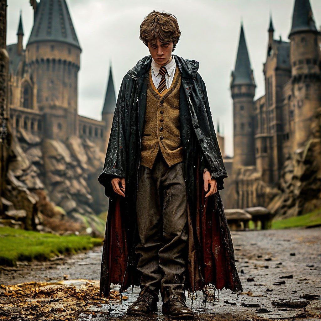 В тёмных уголках Косого переулка, где пыль на полках помнит ещё времена Хельги Хаффлпафф, лавка "Боргин и Берк" развернула бойкую торговлю "особо экономичными" школьными мантиями. "Идеально для Хогвартса!" — зазывно кричит табличка, но если присмотреться к мелкому шрифту, можно прочитать: "Не носить более четырёх часов. Возможны: самопроизвольная левитация, изменение молекулярной структуры и лёгкое превращение в беспозвоночное".