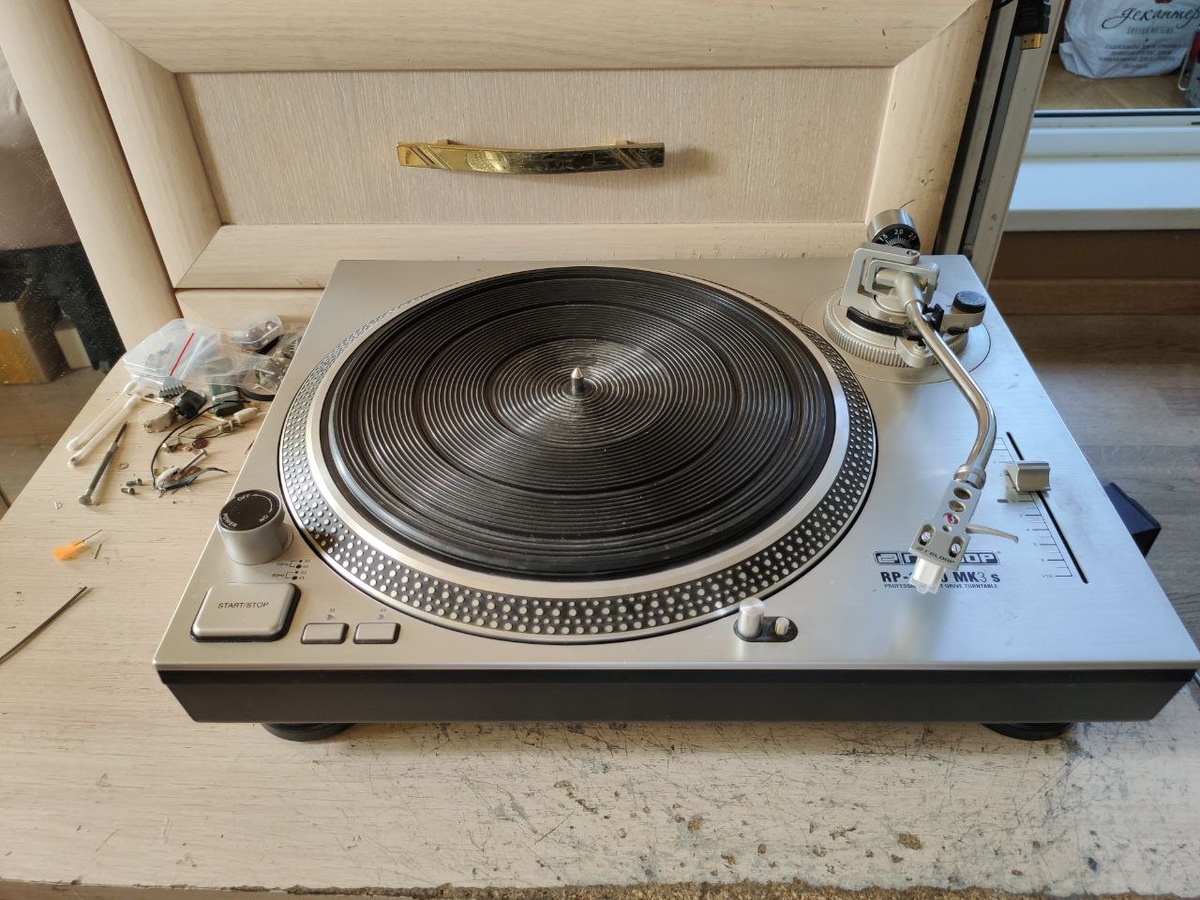 Reloop RP-1000 MK3.Что это за релуп, тулуп, з@lup (нужное подчеркнуть) такой, дичь в виде винилового вертака, со слип матом от веги. 😅 Досталось это чудо от приятеля, говорит оно мне нефиг не нужно, движка всё равно нет, так что забирай. 😎Ну а чего не забрать то, не пропадать же добру, тем более движок подобрать не проблема, изначально там стоял обычный китайский, с той лишь разницей, что стабилизатор оборотов вынесен из двигателя, на отдельную плату.Велосипед изобретать не будем, просто берём движок со встроенным стабилизатором, раздербаниваем его и подключаем напрямую к внешнему стабилизатору вертака. Ну вот и закрутилось, завертелось, осталось только подстроить скорость и всё, что и было сделано. В принципе нормальный вертак, начального уровня, можно даже сказать диджейский, так как есть ползунок pitch, но для обычного прослушивания, это и нафиг не нужно, просто крутить винил, очень даже пойдёт, это конечно не техникс, но всё же лучше чемоданчиков и прочей дичи с пьезо иголками ?