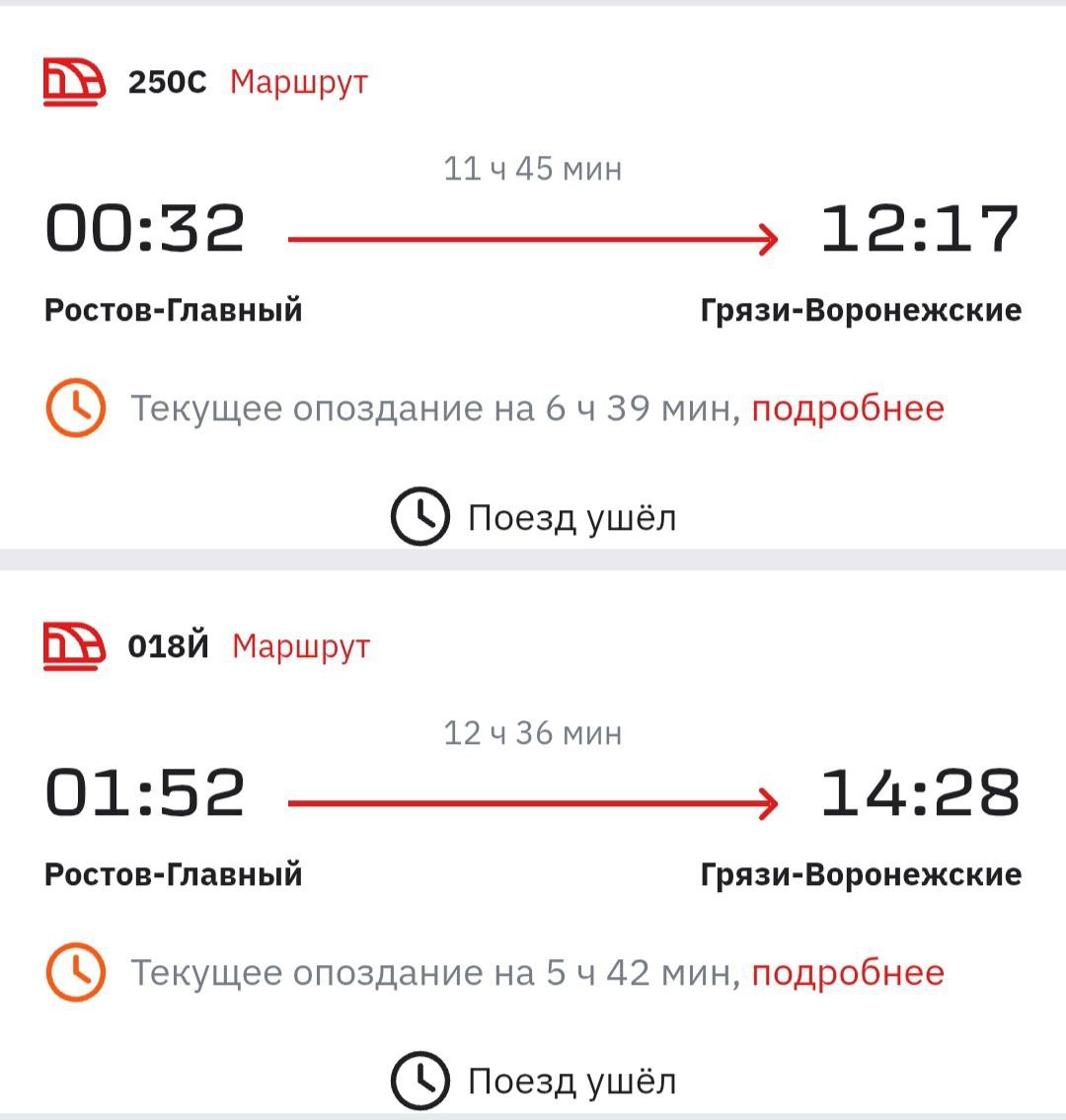Южные поезда серьезно опаздывают из-за повреждения контактной сети после падения обломков БПЛА на перегоне Лихая – Замчалово в Ростовской области. В 09:19 РЖД восстановили движение, но некоторые задержки превышают 7 часов. Наибольшие проблемы при движении с юга – № 122 Новороссийск – Петербург, № 289 Анапа – Екатеринбург. Также серьезные отставания у «Северной Пальмиры», идущей с Черноморского побережья в Петербург. Чуть меньше у № 302 Адлер – Минск, № 304 Сухум – Минск и № 567 Анапа – Москва. У составов, отправляющихся на юг, проблем меньше. Самые большие задержки в 5 часов у № 480 Санкт-Петербург – Сухум и № 114 Москва – Краснодар. Некоторым туристам, судя по комментариям в соцсетях РЖД, ожидание далось непросто: «Где питание и вода, которые обещали в пресс-службе? Стояли почти 8 часов! Ни электричества, ни туалет не работал!» Жалуются пассажиры и на обстановку на вокзале в Ростове-на-Дону: «Люди на вокзале сидят и лежат на голой земле. Ни одного кулера! Информации, когда восстано