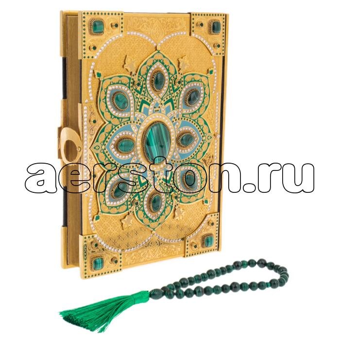 Коран подарочный с четками. ⨳ Материалы: ювелирная латунь, никель, золото, цветные эмали, малахит - 25 шт, фианиты - 810 шт, шпинель - 368 шт, кубик циркония - 389 шт. ⨳ Габаритные размеры: 250 × 180 × 50 мм. Вес: 4.5 кг. ⨳ Изделие укомплектовано: подарочной коробкой из натуральных пород дерева. ⨳ Авторская ручная работа. ✔️Подпишись на наш канал ✍️ ✔️Жми на палец вверх! 👍 🔸 Интернет магазин 📱 Телеграм канал 🔹 Дзен