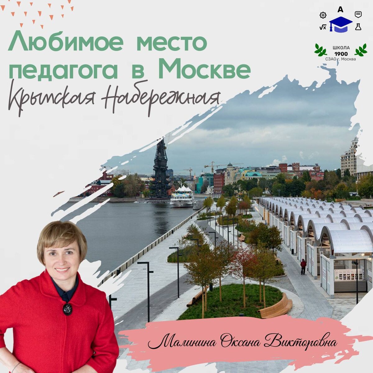 ЛЮБИМОЕ МЕСТО ПЕДАГОГА В МОСКВЕ. КРЫМСКАЯ НАБЕРЕЖНАЯ. 🤩Крымская набережная — это одно из самых вдохновляющих мест в Москве, где сочетаются история, современность и живописные виды. Пешеходная зона с удобными лавочками, арт-объектами и кафе создаёт атмосферу умиротворения, а открывающаяся панорама Москвы-реки и парка «Музеон» заряжает энергией. 🤩Это место идеально подходит для отдыха после рабочего дня или творческих размышлений. Это место, где можно перезагрузиться, посетить музей современного искусства «Гараж» или просто провести время с коллегами или семьёй в самом сердце столицы. 🤩Если вы ещё не были на Крымской набережной, обязательно прогуляйтесь там в ближайшие выходные. Приходите сюда за новыми идеями, яркими впечатлениями или просто за тишиной среди шума мегаполиса. #ДОНМ #Школа1900 #ЛюбимоеМестоПедагога